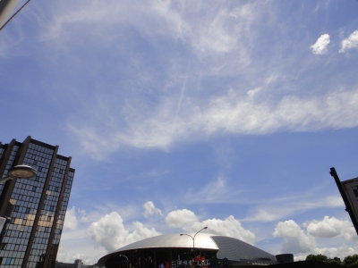 ホテルの前で見上げた空。